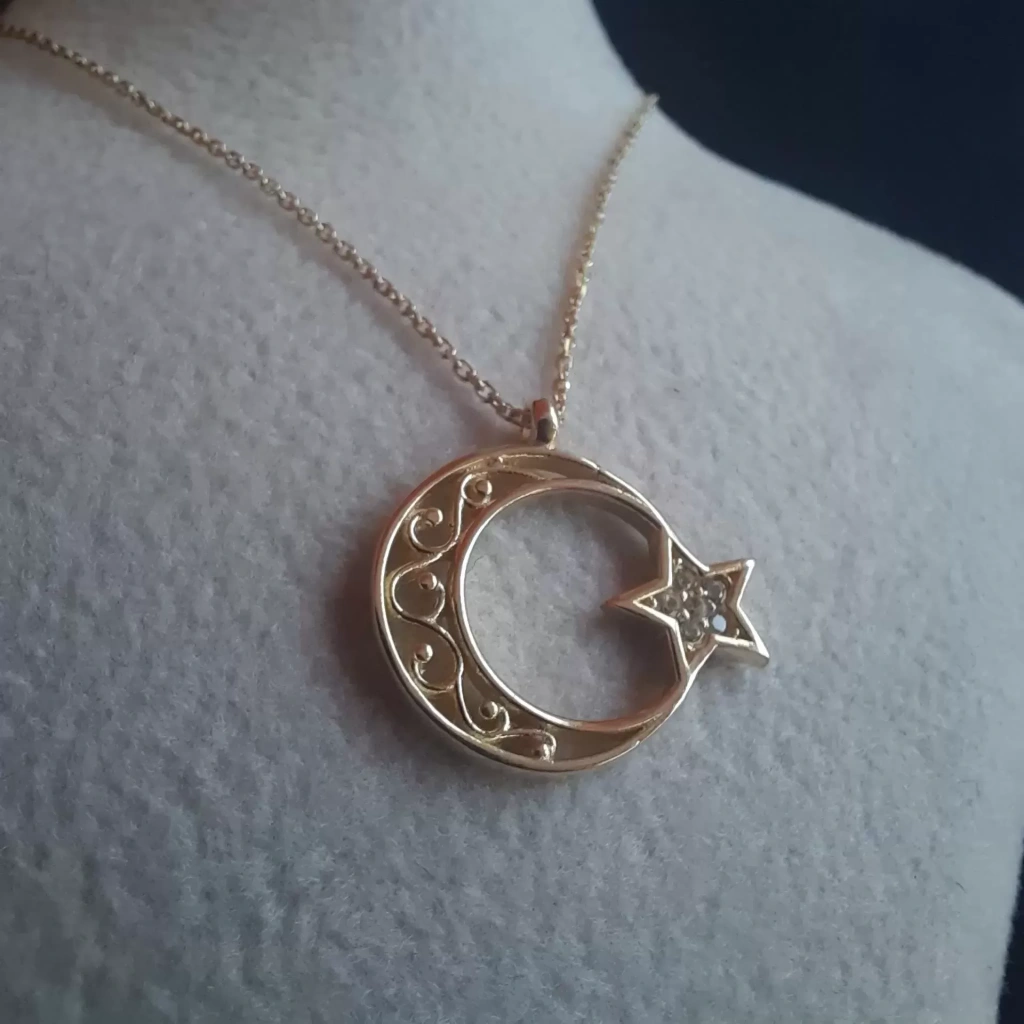 1 adet 2,05 gram 14 ayar ay yıldız kolye – (585/1000 milyem) saflıkta ürünün tarafınıza sigortalı kargo ile gönderimi sağlanacaktır.